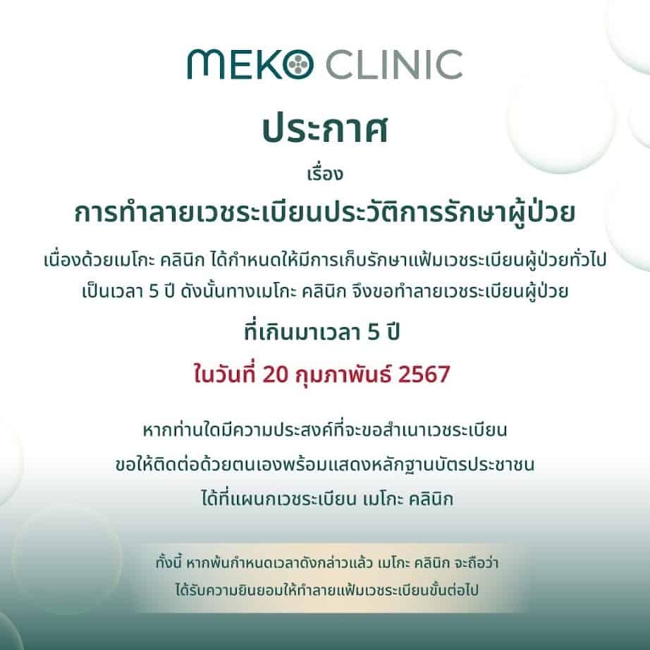 เนื่องด้วยเมโกะคลินิก ได้กำหนดให้มีการเก็บรักษาแฟ้มเวชระเบียนผู้ป่วยทั่วไปเป็นเวลา 5 ปี ดังนั้นทางเมโกะคลินิก จึงขอทำลายเวชระเบียนผู้ป่วยที่เกินมาเวลา 5 ปี ในวันที่ 20 ก.พ. 2567
