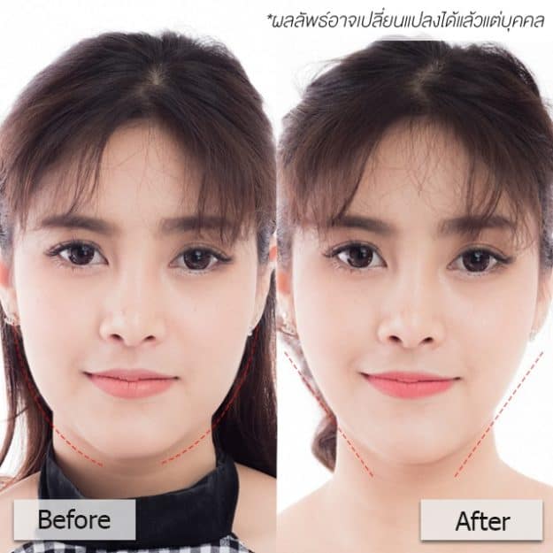 เปรียบเทียบให้เห็นกันชัดๆเลยว่าหลังจากที่ทำมาแล้วหน้าดูเรียวขึ้นเห็นกรอบหน้าชัดขึ้น