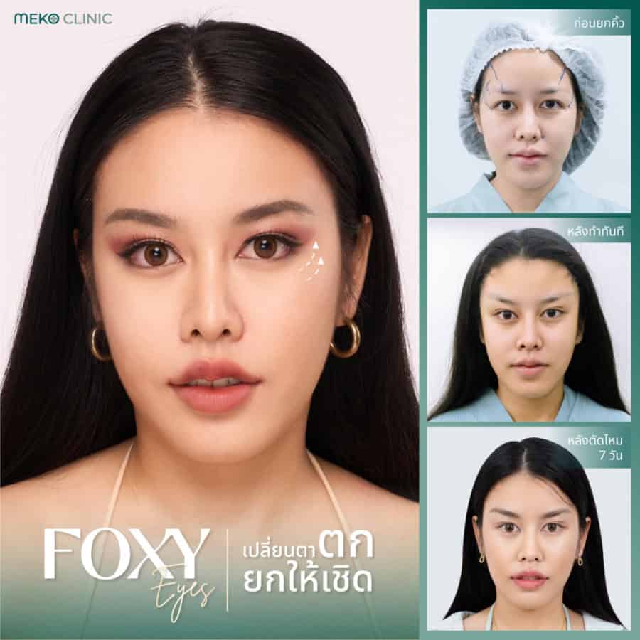 เรียกได้ว่าการทำ foxy eyes เป็นศัลยกรรมยอดฮิตของสาวๆหลายๆคนในตอนนี้ และสำหรับสาวๆที่สนใจอยากทำ foxy eyes แนะนำให้ลองมาอัปลุคใหม่ เปลี่ยนตาเศร้าให้เป็นตาสวยเฉี่ยว เหนี่ยวทุกสายตา ที่เมโกะคลินิกกันนะคะ