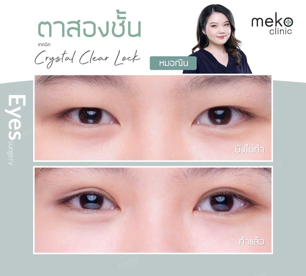 เมโกะ คลินิก มีซิกเนเจอร์ในการออกแบบ ชั้นตา ที่จะเนรมิตให้ตาของคุณ “ เส้นคม ชั้นชัด โค้งสวย ” ด้วยเทคนิค Crystal Lock เป็นเทคนิคทำตาเฉพาะ ที่นี่ ที่เดียวเท่านั้น โดยศัลยแพทย์แต่ละท่านจะออกแบบชั้นตา เพื่อให้เข้ากับรูปตาของเเต่ละบุคคล มีความเป็นเอกลักษณ์เฉพาะคุณ และมีความสวยละมุนแบบธรรมชาติ
